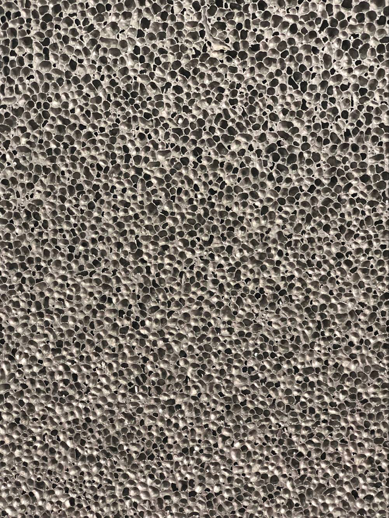 發(fā)泡鋁是以氫化鈦為增粘劑和發(fā)泡劑,加入熔融的鋁中攪拌而制成的。是一種集結構-性能一體化的新型功能材料,內部是有許多的氣泡層形成的新概念金屬材料一般用金屬做的多孔性材料,它是比重2.7的金屬鋁發(fā)泡而成比重只有0.2-0.4的超輕純金屬材料,體積擴大了13倍,重量只相當于木材的三分之一。和開孔泡沫鋁相對閉孔發(fā)泡鋁沒有吸聲性能,但是其也有非常良好的吸能及電子屏蔽電磁波的作用,這些特性使它在軍事,火車,輪船,建筑等領域受到廣泛重視。